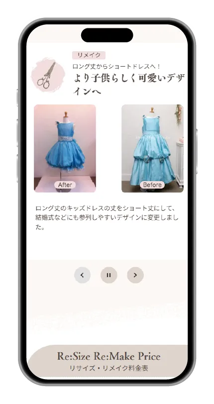【製作実績】1ページ型HP製作:リメイク・リサイズ専門店のウェブサイト