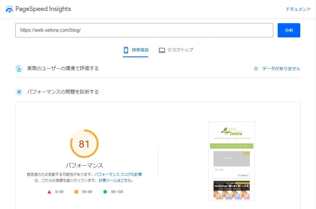 最後にもう一度、PageSpeed Insightsを確認してみる