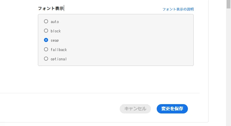 デフォルトのAutoの場合、Webフォントがダウンロードされるまで適用された文字は読み込まれません。しかし、swapを選択するとWebフォントがダウンロードされるまでは代替フォントを使って表示します。