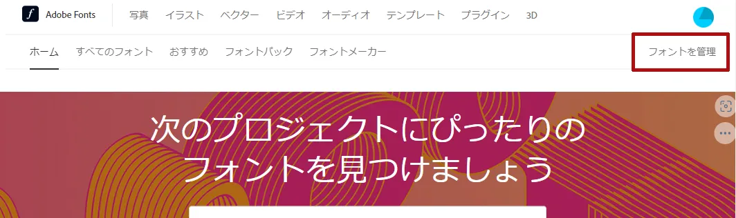 Adobe Fontsのサイトから【フォントを管理】をクリックします。