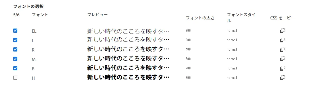 使用しているフォントは1つでしたが、太さの種類ほとんどにチェックが入っていました(汗)